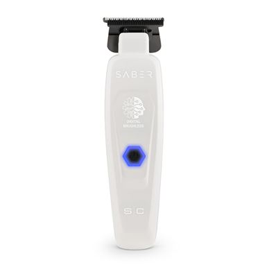 Ontdek de nieuwe STYLECRAFT Saber trimmer in het wit. Deze nieuwe trimmer heeft een stille, krachtige motor (digital brushless motor) en de perfecte combinatie van snijmessen. De STYLECRAFT Saber trimmer snijdt zo hard dat je de snij-echo kunt horen. De digital brushless motor draait op 7.500 rpm en biedt extra kracht en vermogen voor een stil en efficiënt kapsel. De motor biedt een flexibele krachtoverbrenging die resulteert in een soepelere werking en zorgt voor minder hitte van het snijblad.